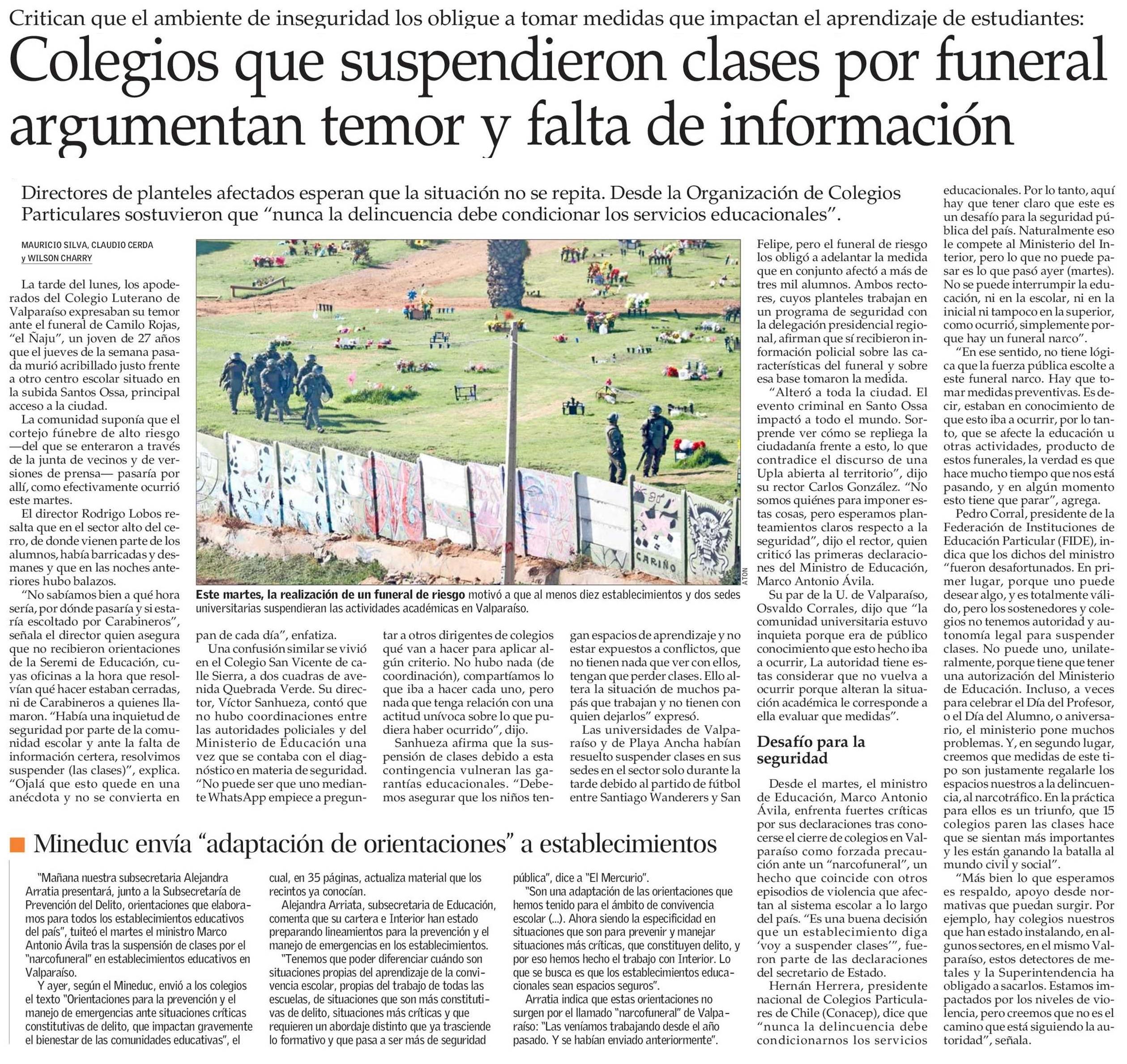 Hernán Herrera, presidente nacional de Colegios Particulares de Chile (Conacep), dice que "nunca la delincuencia debe condicionarnos los servicios educacionales. Por lo tanto, aquí hay que tener claro que este es un desafío para la seguridad pública del país. Naturalmente eso le compete al Ministerio del Interior, pero lo que no puede pasar es lo que pasó la semana pasada".